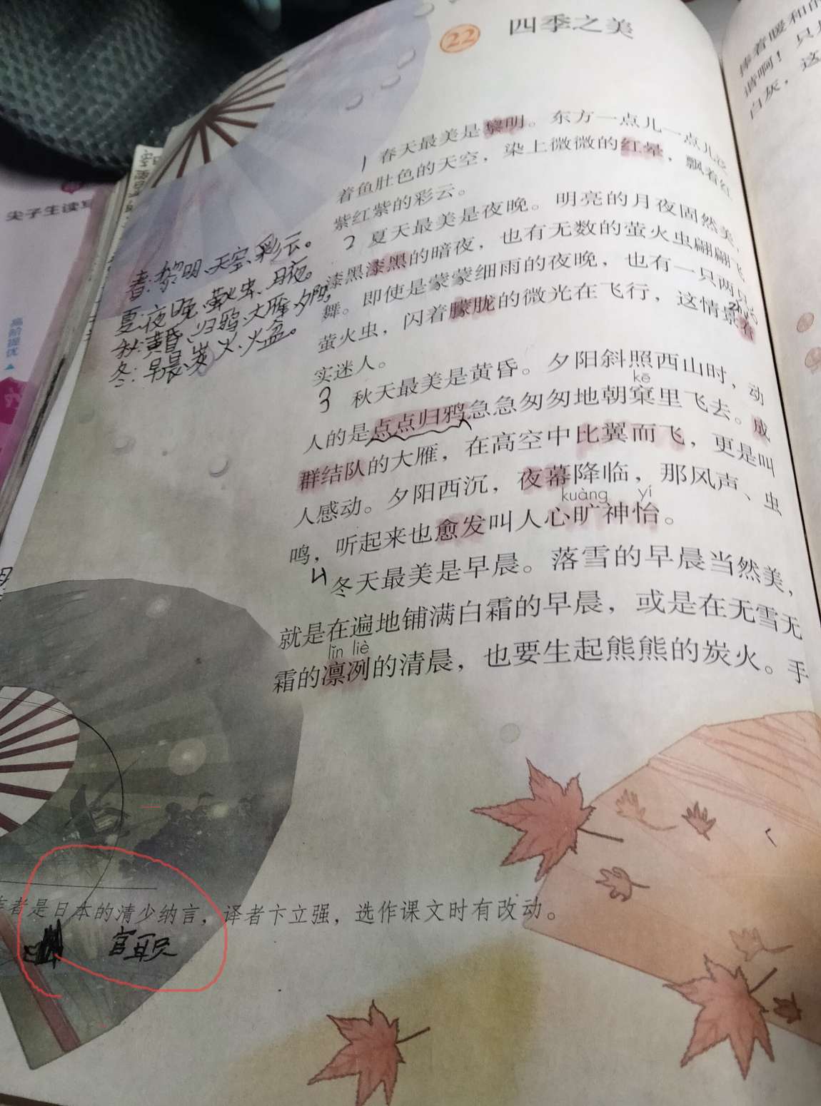 四季之美的作者是日本人名字是清少纳言。阿!阿!阿!阿!😱