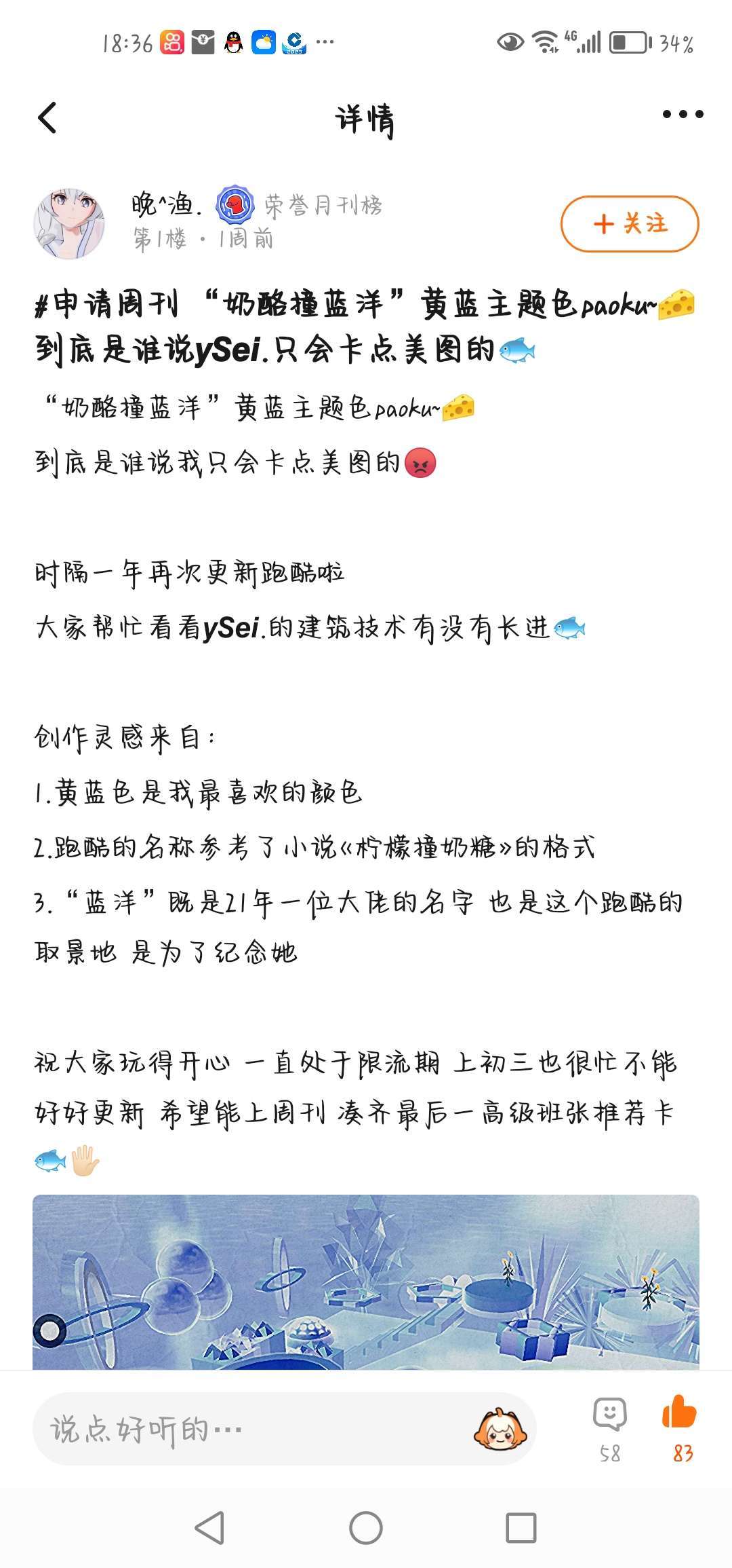 【建筑】【卡点】【绘画】【美图】【剧场】【攻略】各位创作者和玩家们可以根据自己擅长的区域发布相关作品~高质量的帖子小七会收入囊中哒!!