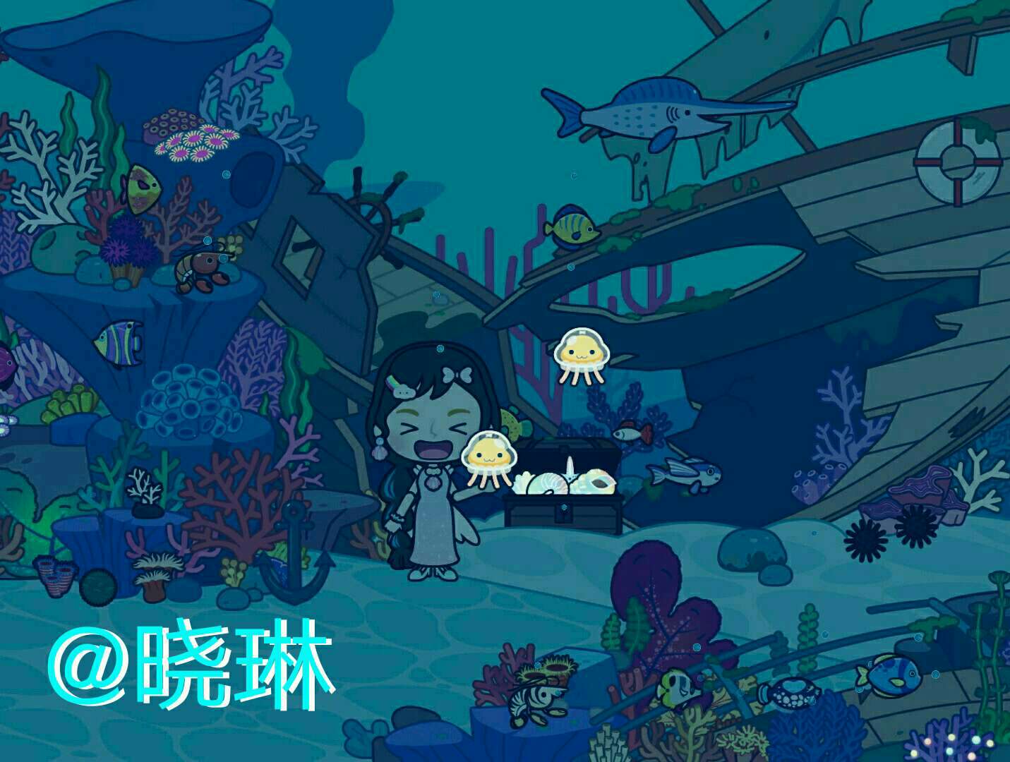 原来,这个小人鱼是人鱼公主,人鱼公主让我晚上去废弃的船只上,据说那里有宝藏,我不知道在哪里的话,水母可以帮我带路。