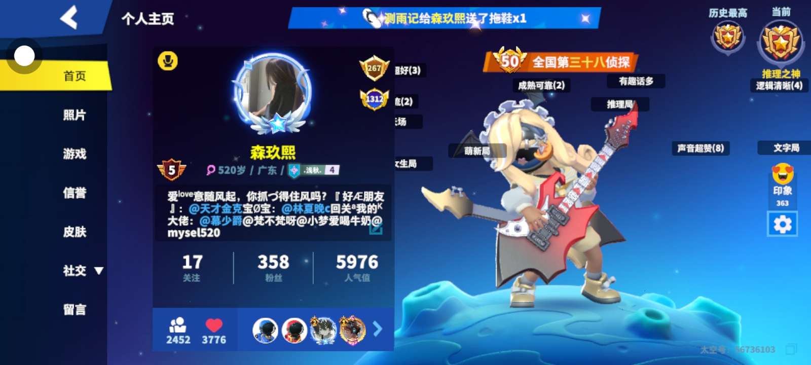 找闺蜜,嘿嘿!本人今年14最好来个同岁的不行的话13也行 ,我有实力的最高侦探全国25名因为一段时玩