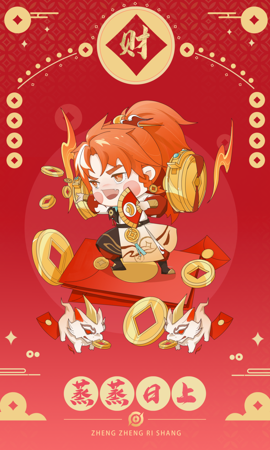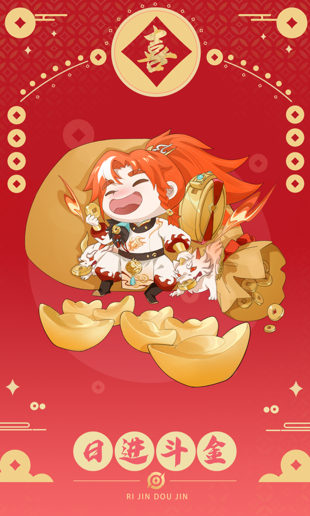 皮肤以国风为设计主题: 提取了貔貅“天禄兽”的设定作为设计元素,技能特效以红色火焰为主,火焰、铜钱等元素的融合,寓意吉祥,对根植人心的美好愿景做出了很好的演绎。让我们一起期待蒙犽的这款新皮肤吧~