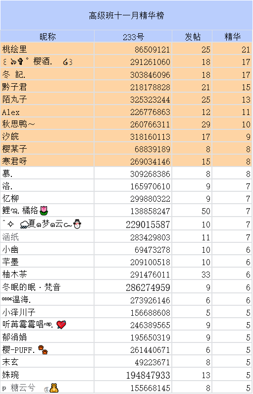 高级班十一月度精华榜单回归啦,新加入了不少小伙伴,大家都在非常努力的创作哇,都来看看有哪些小伙伴上榜了吧~