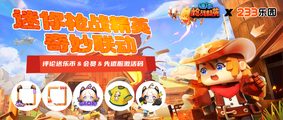 大家好呀!有谁还不知道迷你枪战精英和233乐园联动马上开始啦?大家都有记得参与预约活动领取头像框嘛!在本次版本更新后,参与乐园内的转盘抽奖和签到活动就可以获得233联动专属的头像框、气泡、时装~快来参与活动吧!