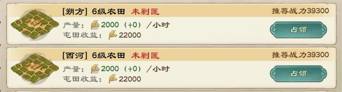 占领的等级越高产量越多