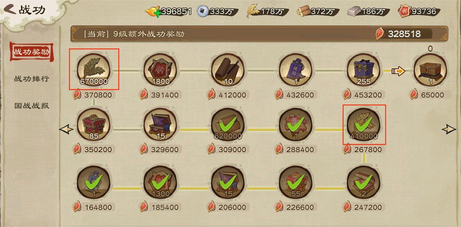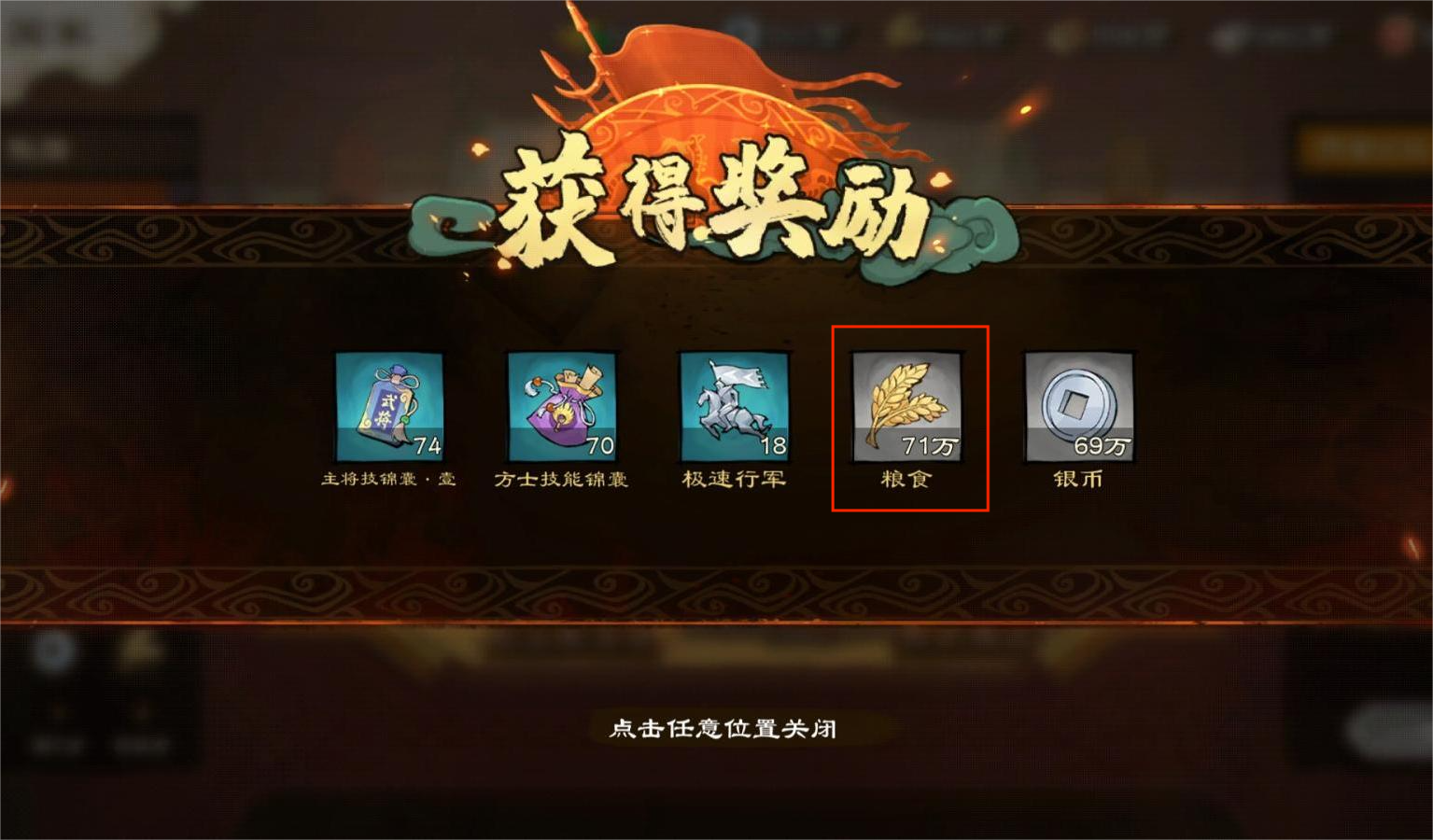 战功奖励中也含有粮食