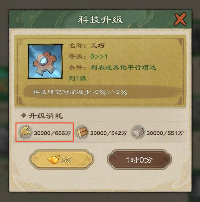 升级科技也需要用到粮食
