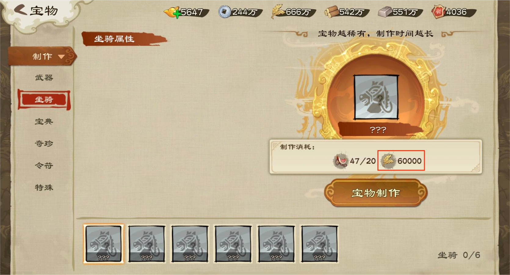 一些宝物在制作和突破时会需要用到粮食