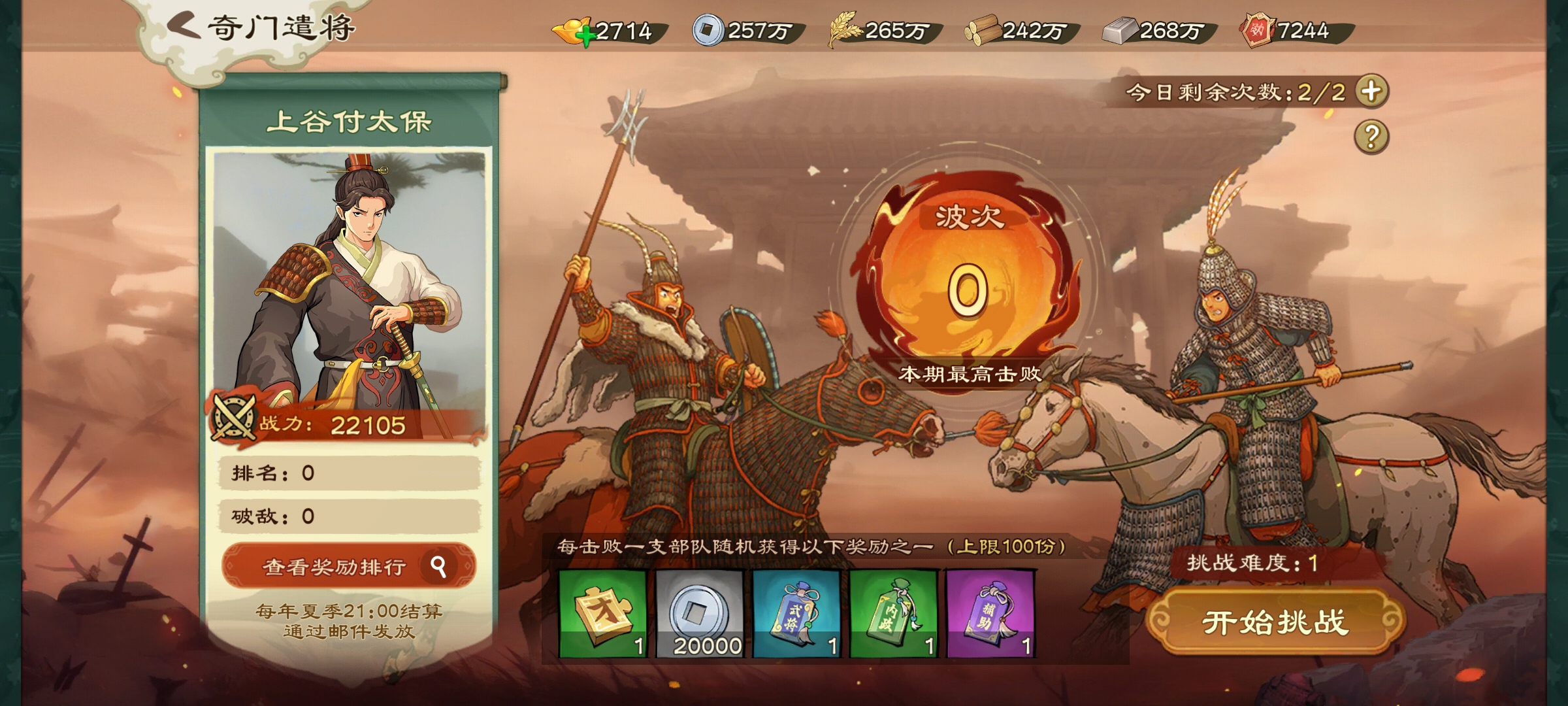 每日可免费挑战2次,可购买1次