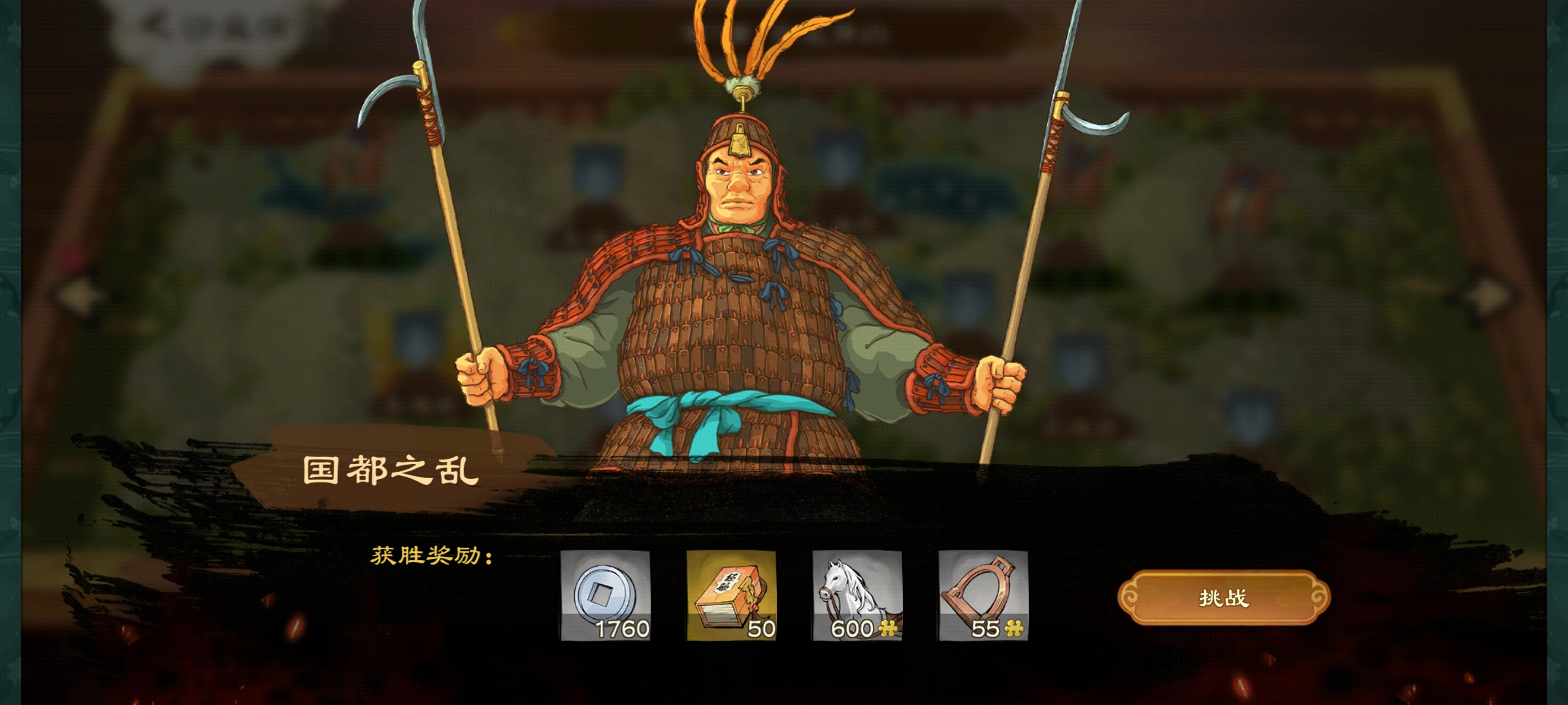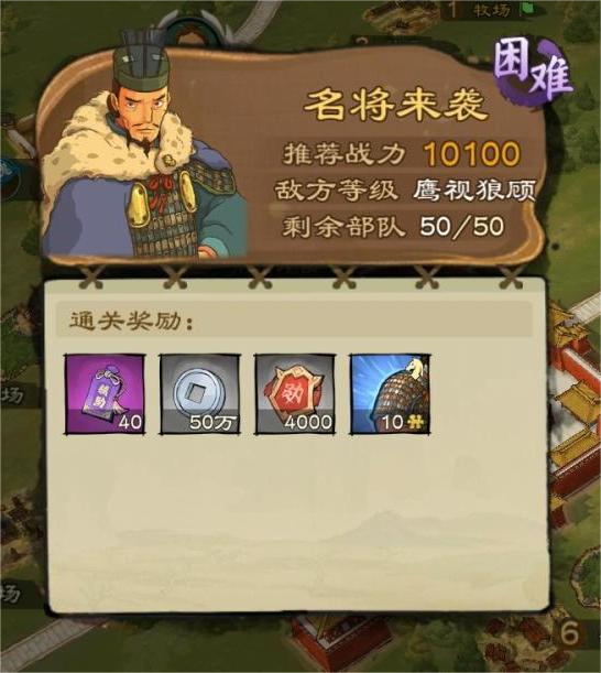 官邸升级到一定等级后会出现这个名将来袭,通关后可获得大量银币