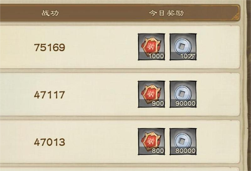 根据本日的战功排名,会有功勋和银币奖励
