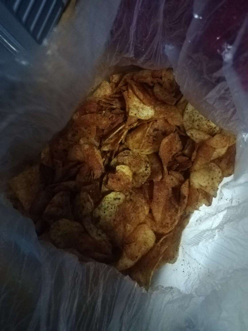 今天炸土豆片吃。 :