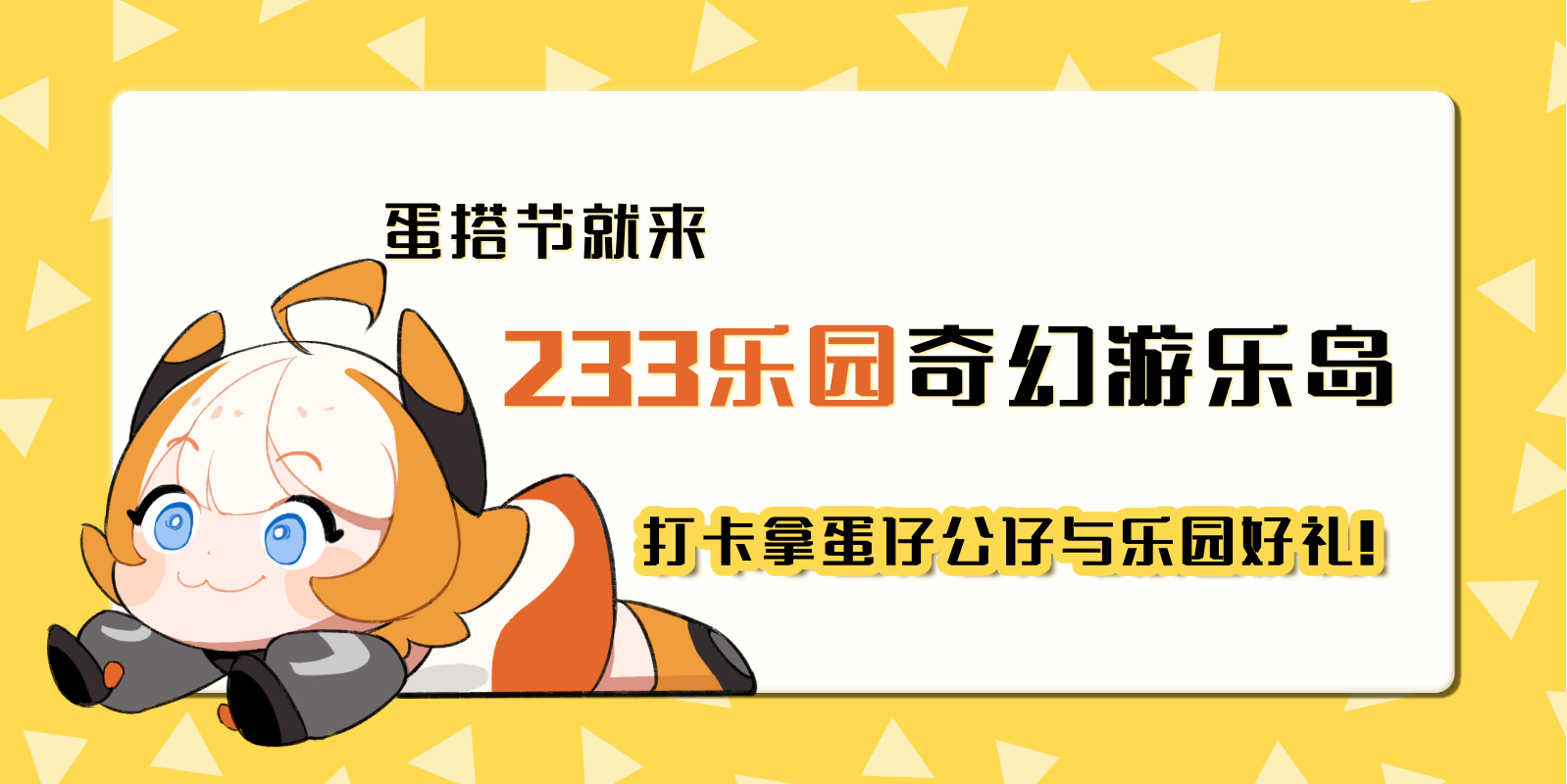 233娘打开了时空穿梭的大门,现在邀请各位蛋仔们前往她的秘密基地——233乐园岛!大家抓紧跟上233娘的脚步,一睹这场游园盛会的奇妙风景吧~现在打卡联动地图,还有机会能拿蛋仔公仔周边以及233乐园会员还有专属头衔【蛋仔探险家】噢!