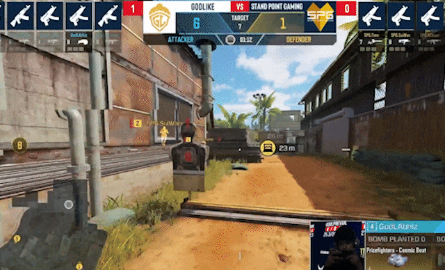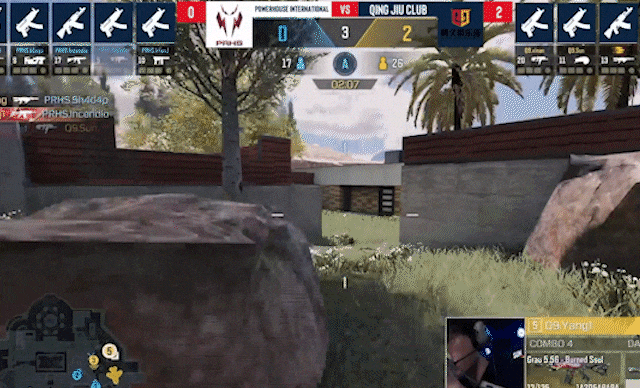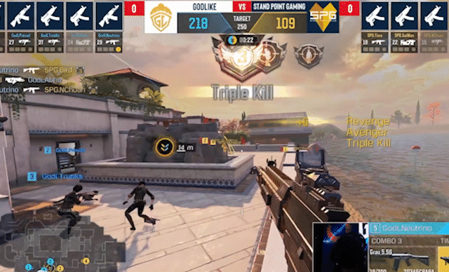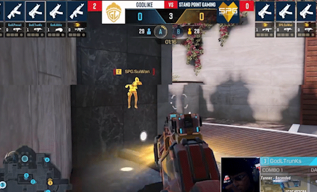 SPG.岁晚掩体后跳跃勾引,接滑铲出击,灵性操作成功复仇GODL.TrunKs并拿下双击帮助队伍踩下A点。