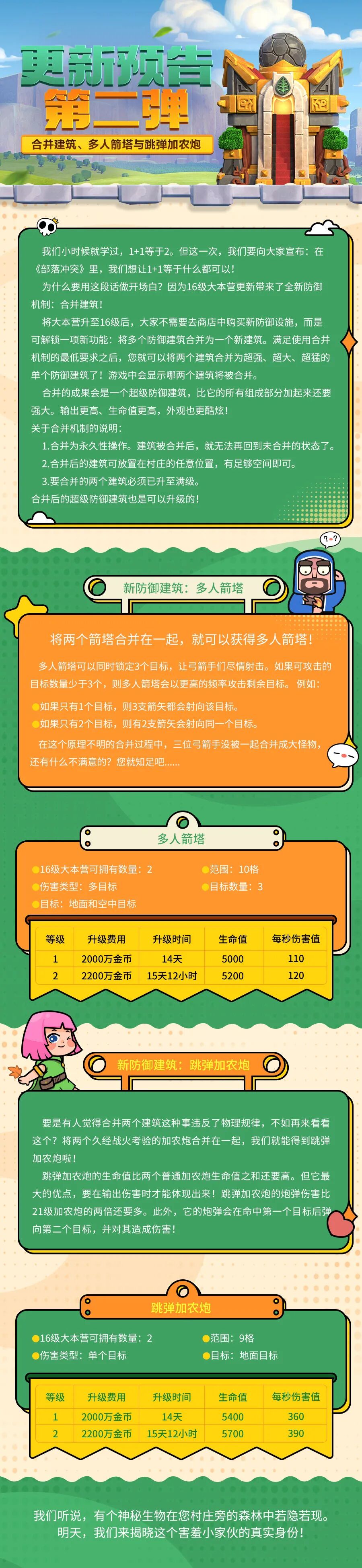更新预告第二弹|合并建筑、多人箭塔与跳弹加农炮