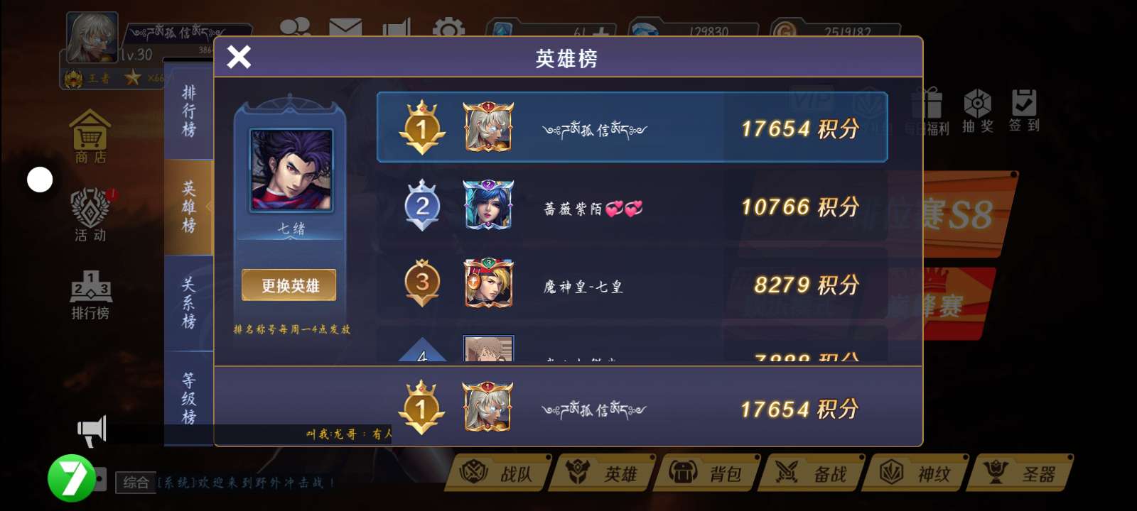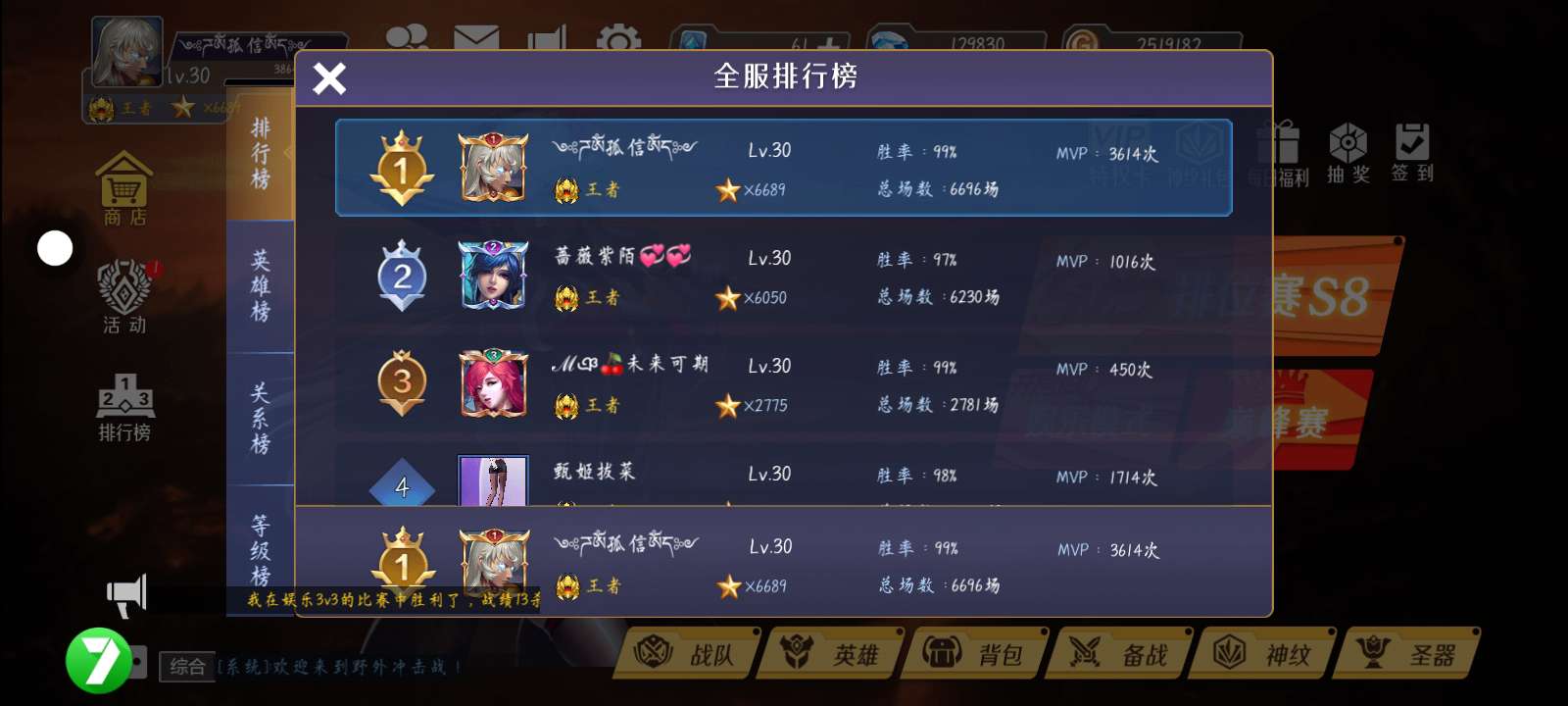 排位巅峰双榜第一。