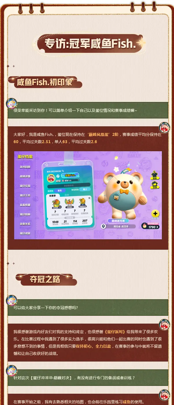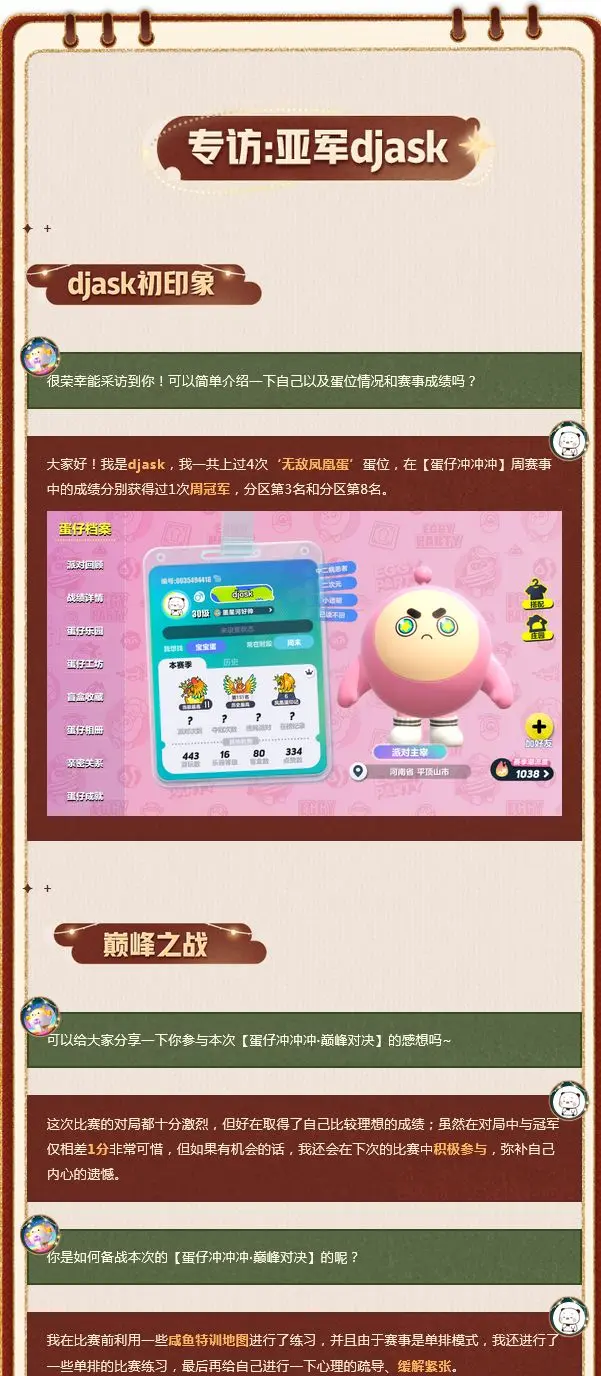 本次皮蛋特意邀请了冠亚军二位蛋仔进行独家专访