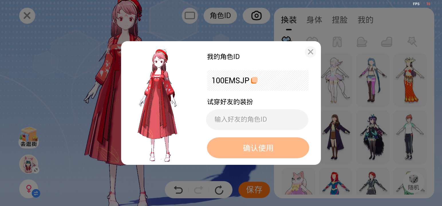 新年穿搭了,如上图,这是角色ID:100EMSJP