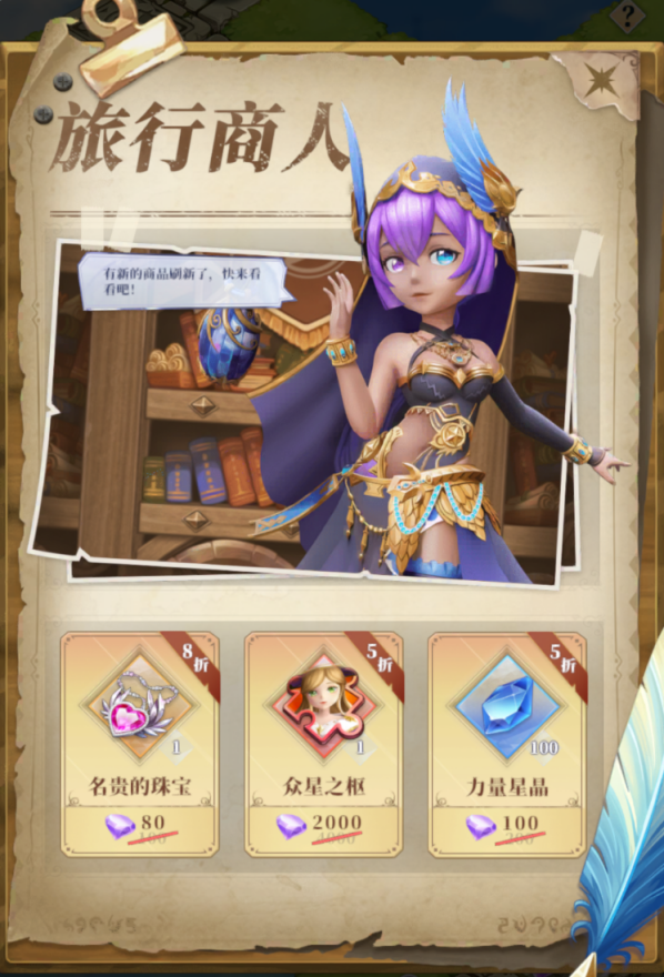 旅行商人只要在前进路线上碰到就会触发,旅行商人会售卖带有折扣的钻石商品。