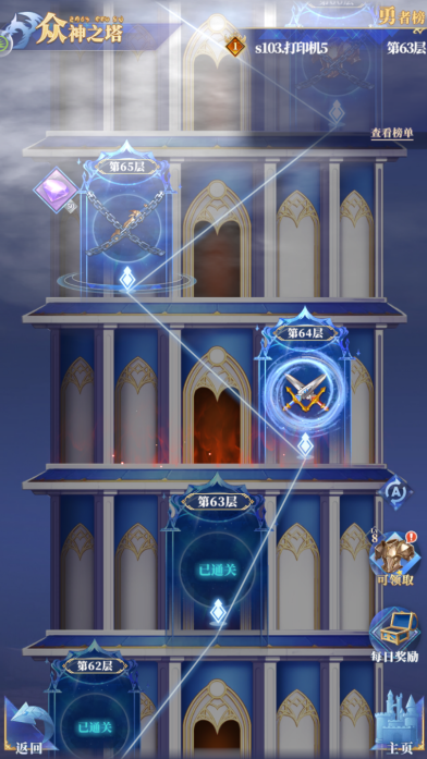 勇者榜会根据玩家所在层数进行排名,并发放荣誉奖励。