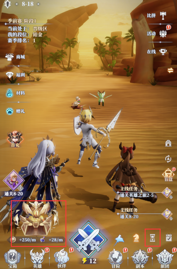 推动主线章节可以增加挂机的收益,挂机收益主要有钻石、伙伴强化材料、金币和冒险者经验等。