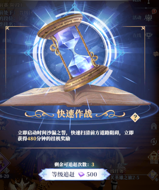每次快速作战可以立即获得480分钟的挂机收益和120分钟的星座增益效果。