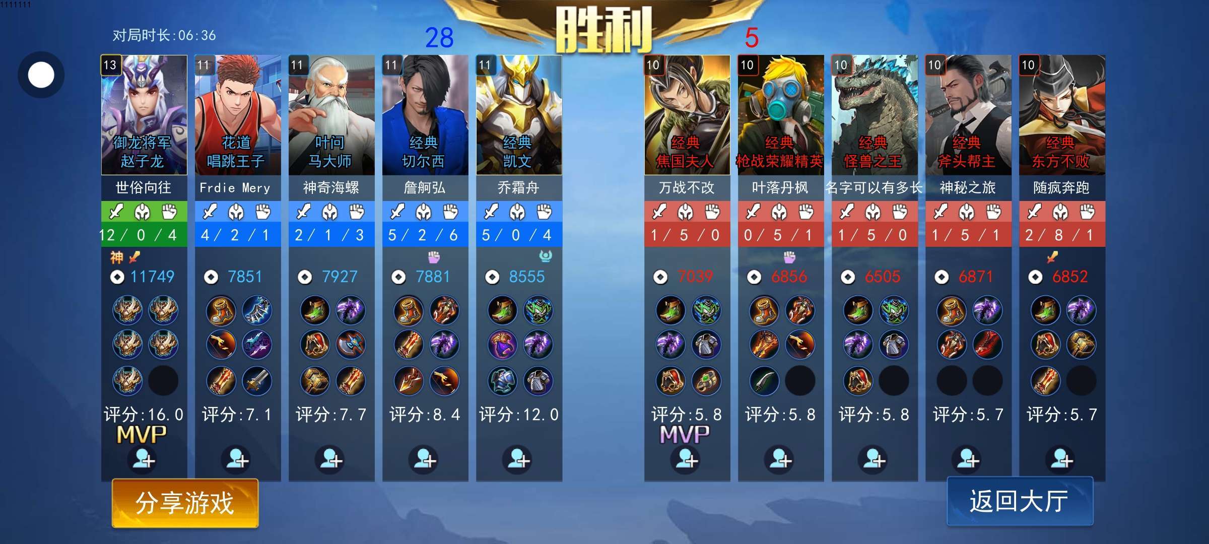 看我刚玩了一把,12杀0死4助攻,牛不牛逼🐮。