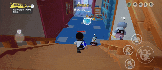 大家可以通过收集图上的星星减少游戏时间,黄色的星星减1秒,彩色的减5秒,最终帮助团队赢得胜利!