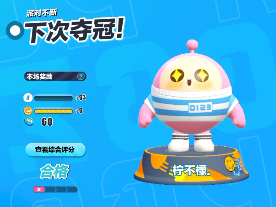 第一次失败,第二次胜利夺冠,虽然没有钱买蛋币,但还有瓶盖,可以抽取衣服,也不亏吧。