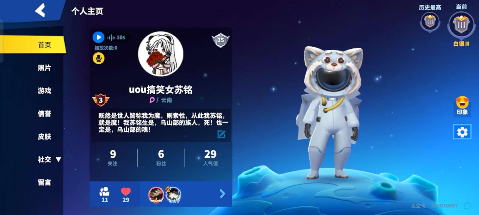 抖音名字:uou搞笑女苏铭我苏铭生是,乌山部的族人,死!也一定是,乌山部的魂!