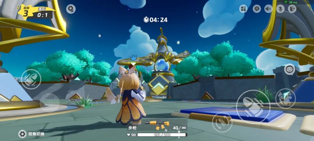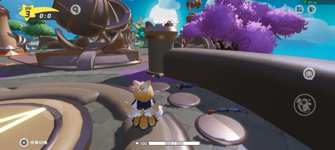 星宝需要使用地图里生成的武器推掉防御塔,直捣水晶赚取积分噢,当一队推掉两座防御塔和一座水晶率先获得3分后,就获得胜利啦!