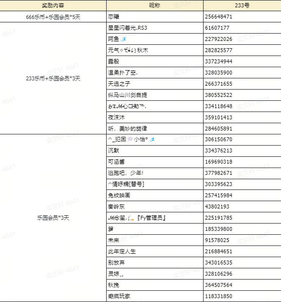 随机抽取15名超越者,送出233乐园会员(3天)