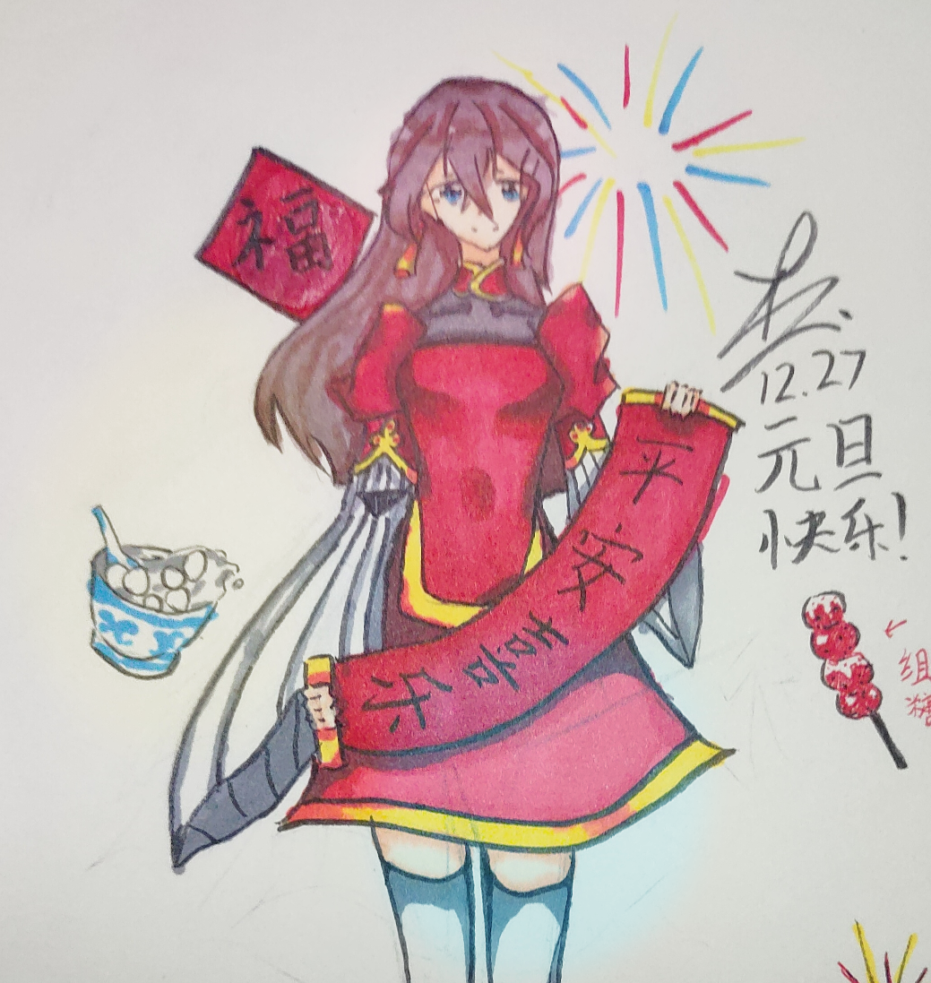 【欢乐元旦】绘画组@陌丸子 有一点生草👉🏻👈🏻因为不太会画这种风格的东西所以比例崩致歉!!!