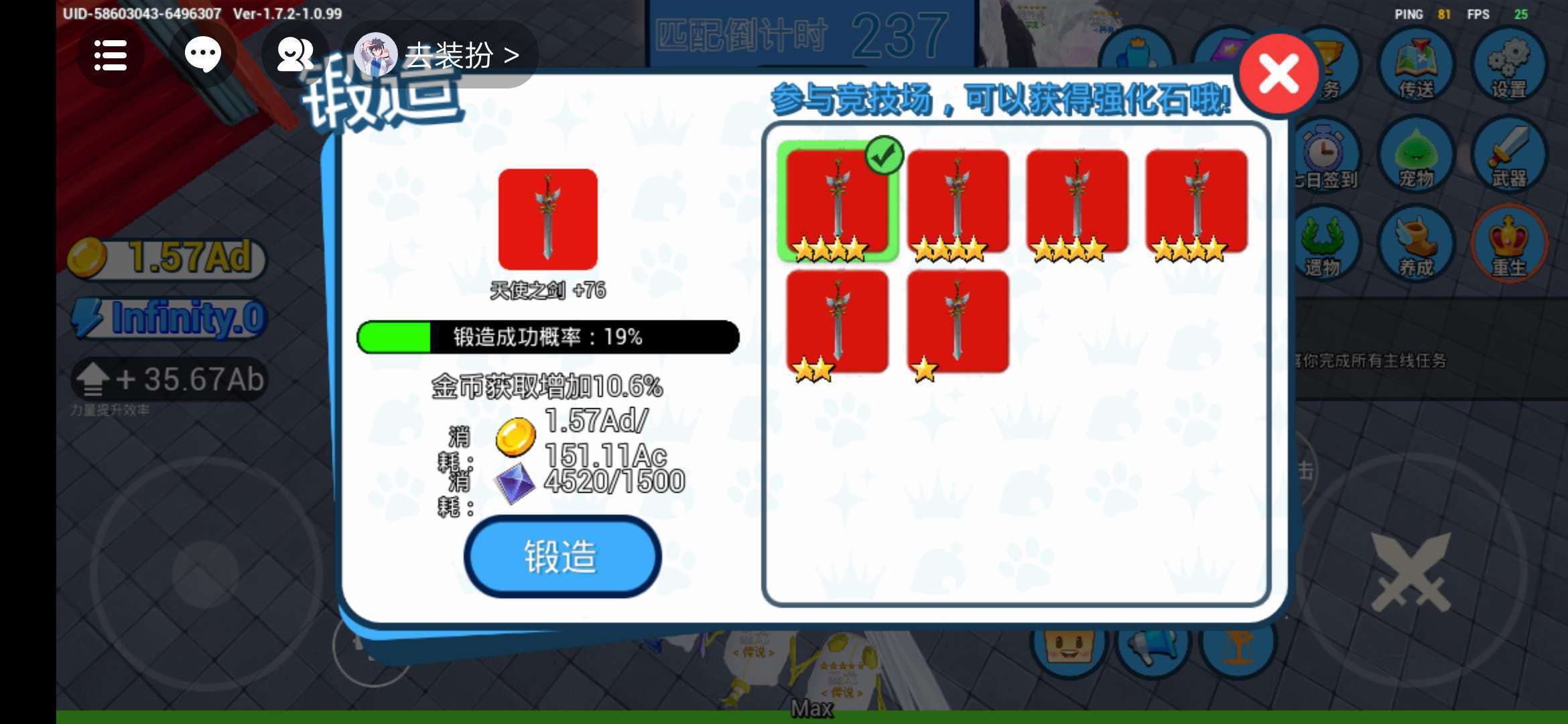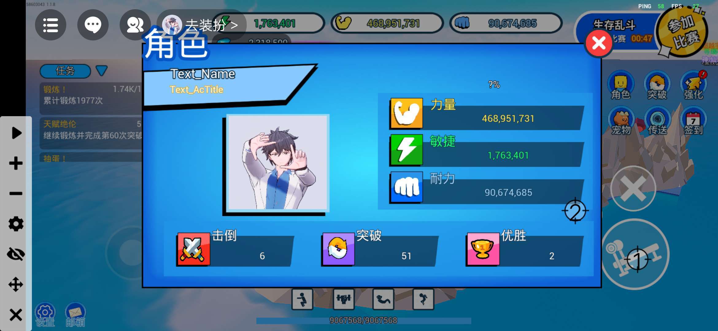 属性膨胀(每秒加一)