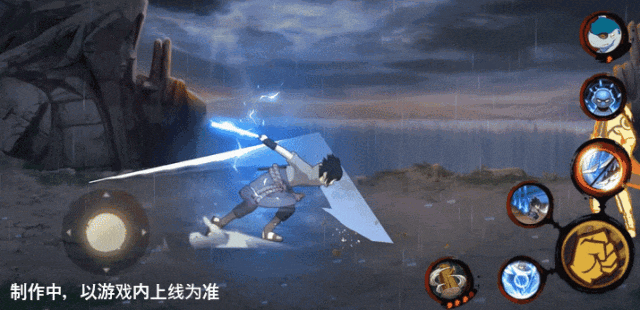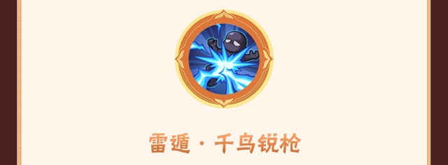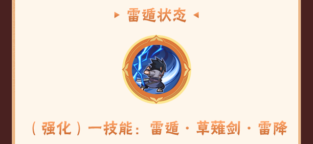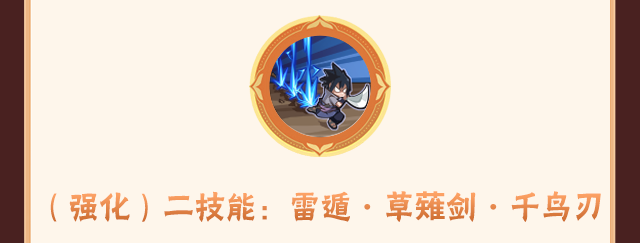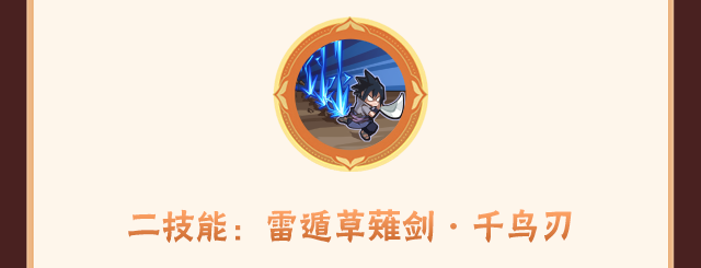 佐助使用雷遁的强化技能命中目标后,会跃起用草薙剑将目标定在地面,随后释放高爆发伤害的千鸟锐枪贯穿目标。