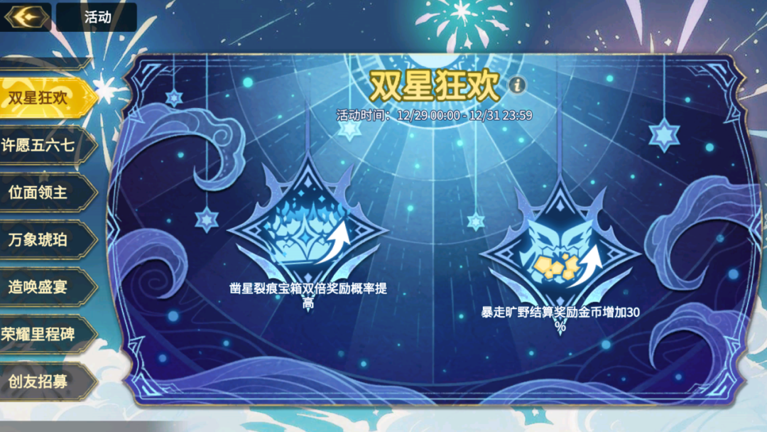 「双星狂欢」活动期间,每日开启 两项增益 ,探索效率立刻拉满!