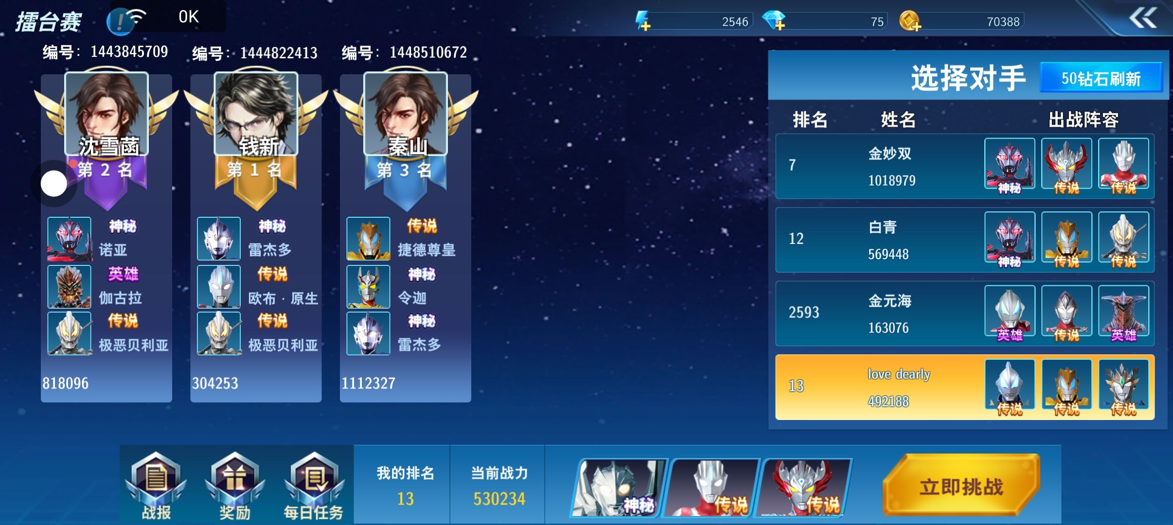 666我13名,他也是第13名。