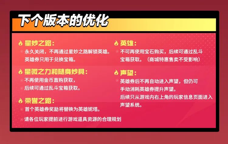 由于英雄券可以用于开宝箱,因此英雄券加声望的功能需要调整。星妙之路英雄全部解锁后,玩家获得英雄券后不再自动消耗英雄券充声望,不弹出声望进度弹窗。