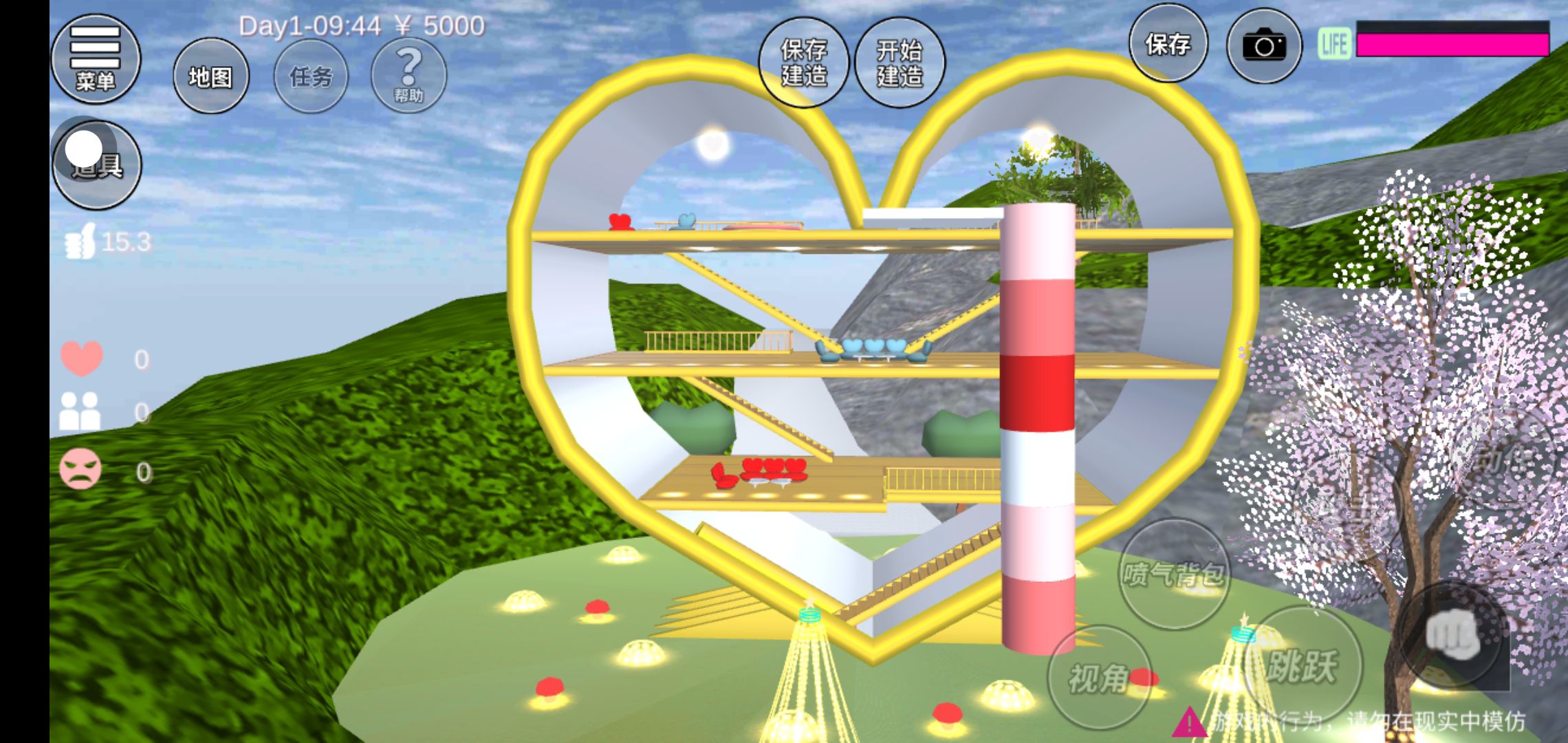 浪漫爱心屋跑酷!和你的爱人起跑吧!建议:把时间调到下午四点钟哦!