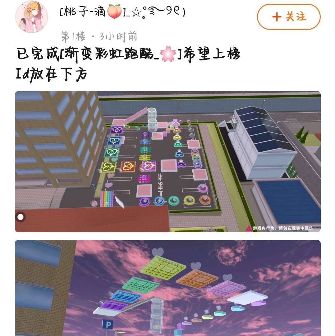 渐变彩虹的色系,不管什么时候都非常受欢迎!跑酷整体算长,跑酷的美观成度非常高!推荐各位去玩一玩❣️