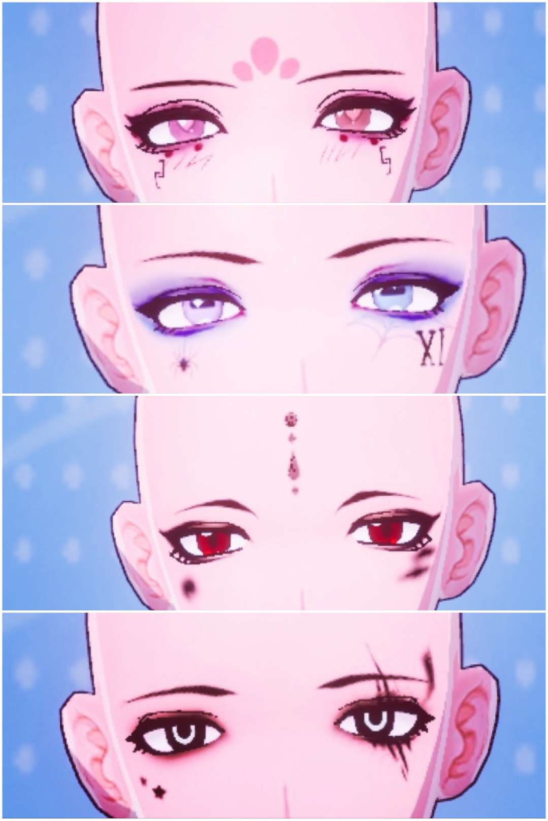 说真的,感觉男角色眼影比女角色眼影好看一点,特别是第二个非常好看,就是改颜色的时候,它这颜色太浓了,不能弄淡一点,而且有些眼影改颜色都没什么变化。🙃