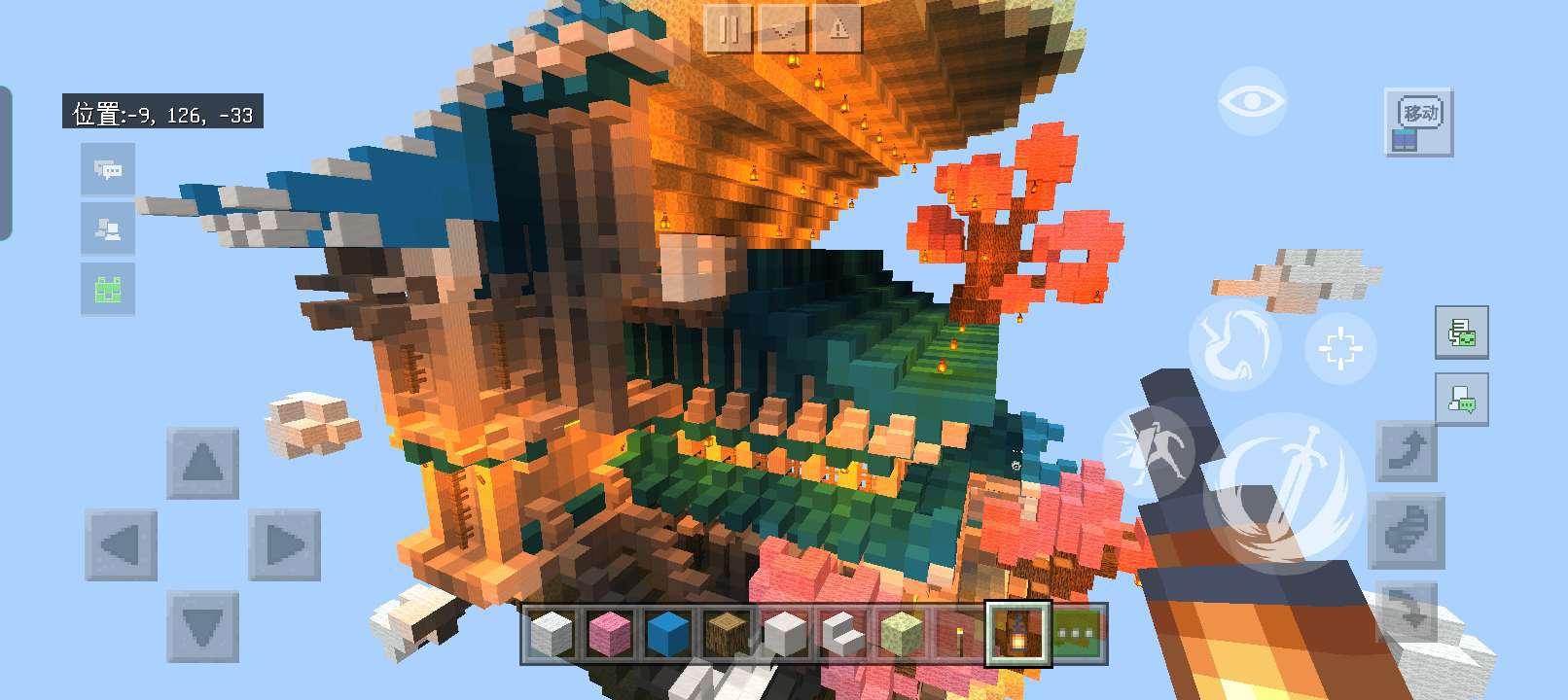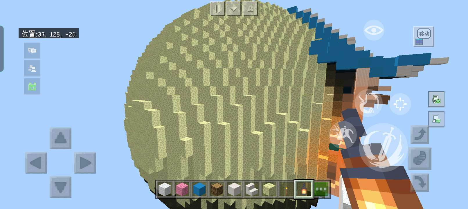 后面是一个大大的月亮🌙,主是以末地石🌕搭建的,末地石上的凹凸不平,正显示出月亮上的不平整👋,虽然颜色有点淡🙊,但也能让人知道这是月亮👀