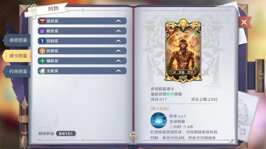 第二个【魂卡图鉴】则是对目前已收集到的魂卡进行展示的页面,其中会详细地以类型、稀有度等进行分类整理,点击想要了解的魂卡就能知道其属性、特效、技能以及获取方式哦!