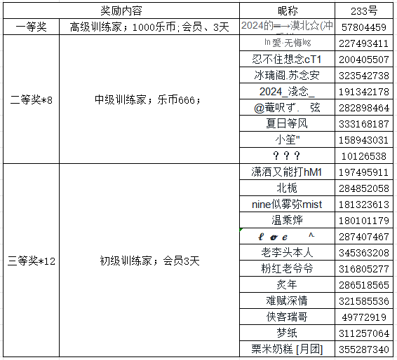 高级训练家:乐币*1000+会员*3天——1名