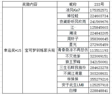 我们将从参与活动的各位训练家中,来抽取获得奖励的训练家~~~