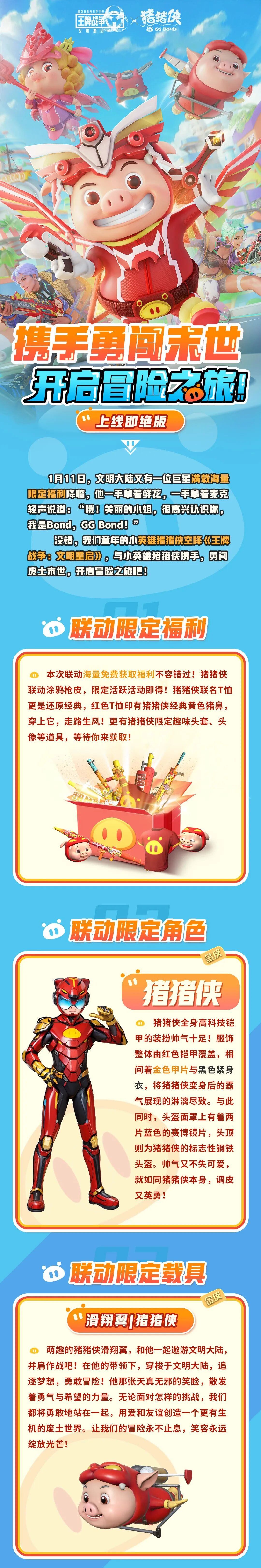 《王牌战争》x《猪猪侠》|1月11日携手猪猪侠勇闯末世,开启冒险之旅吧!
