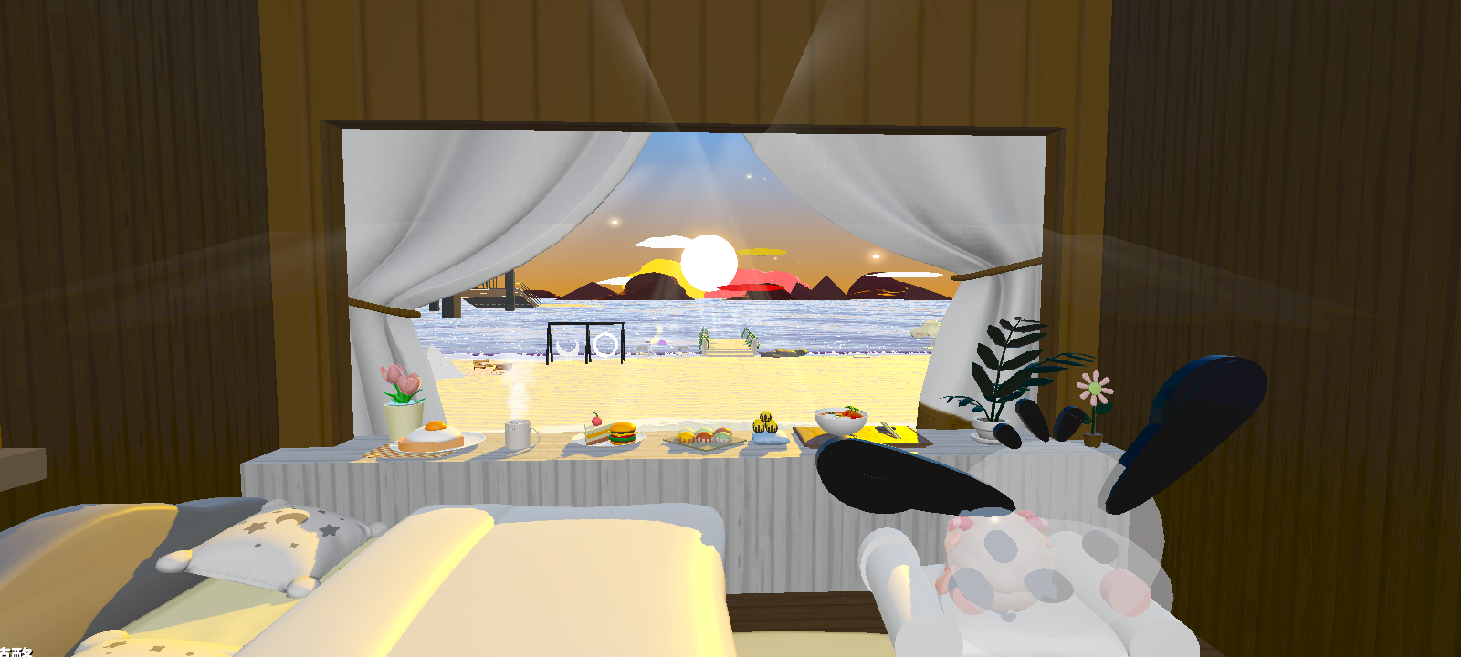 夕阳下,窗外的风景映入眼帘💞一边欣赏的同时,还能吃好吃的呢!😜
