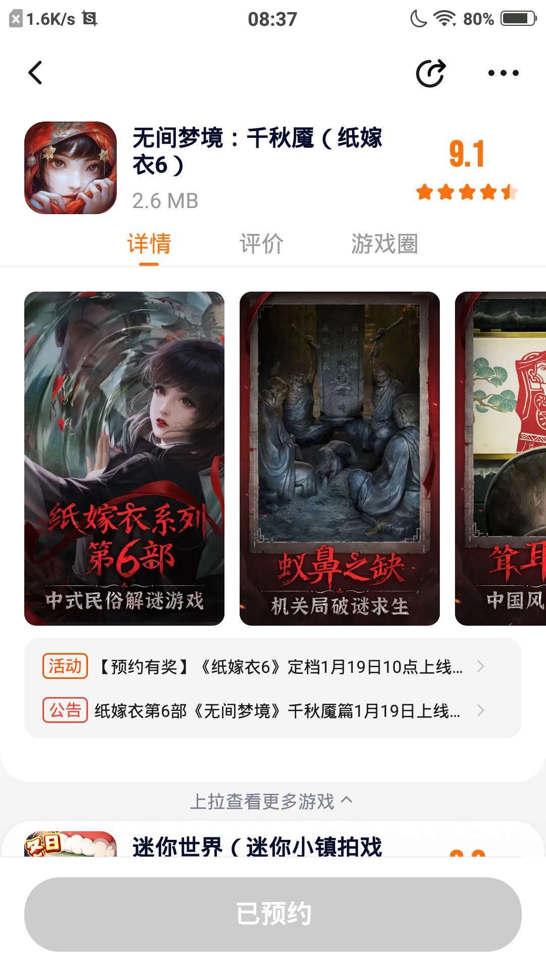#纸嫁衣6 已经预约啦!期待游戏早日上线