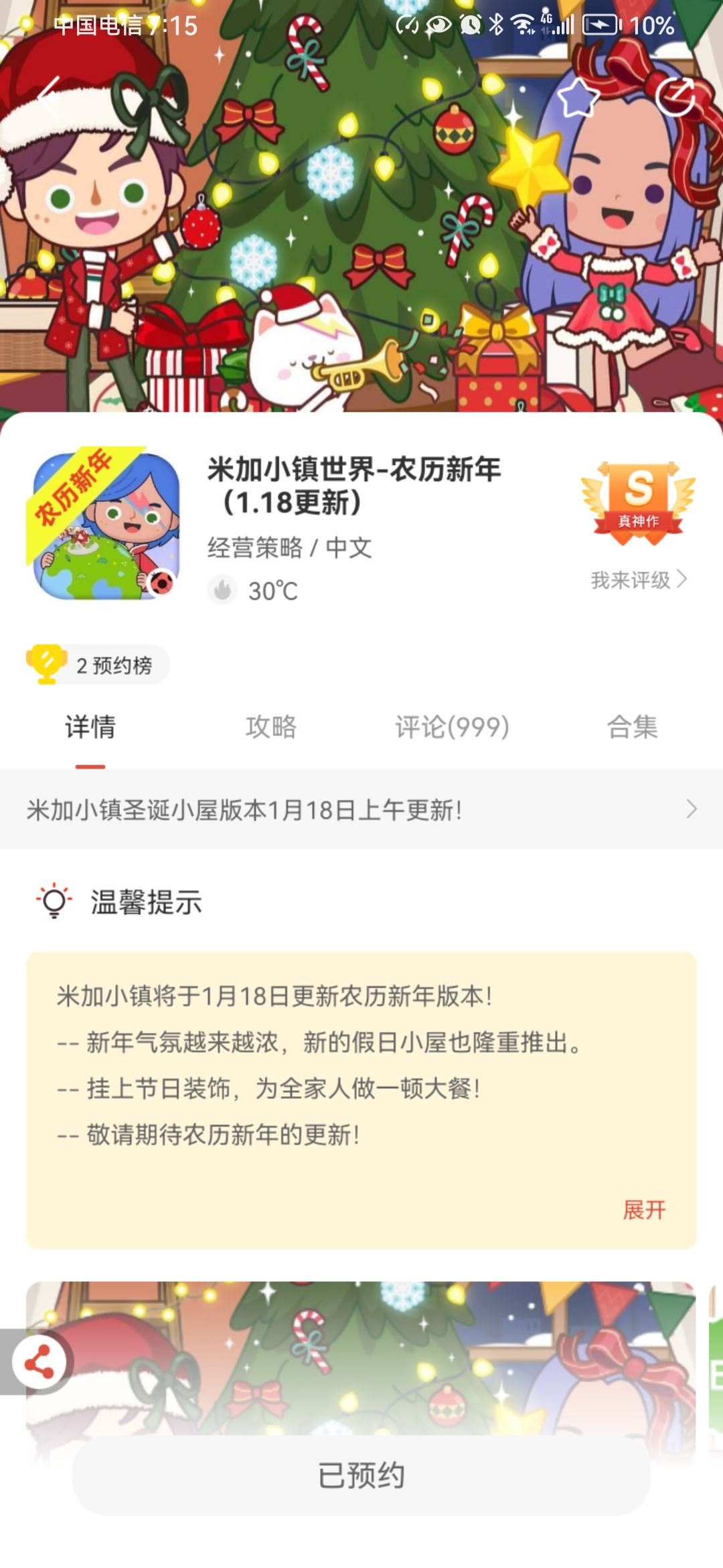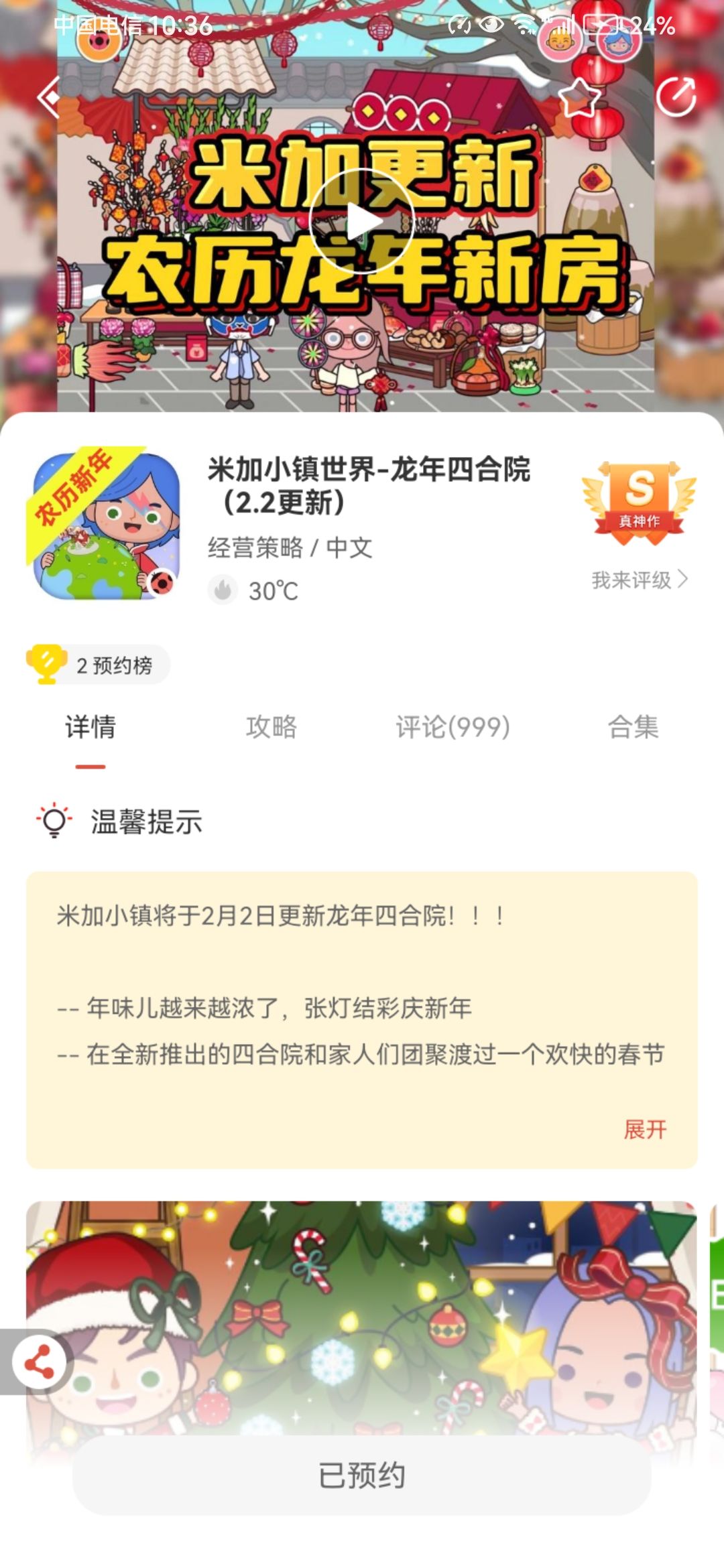 好消息,好消息。米加在1月18号更新圣诞小屋。