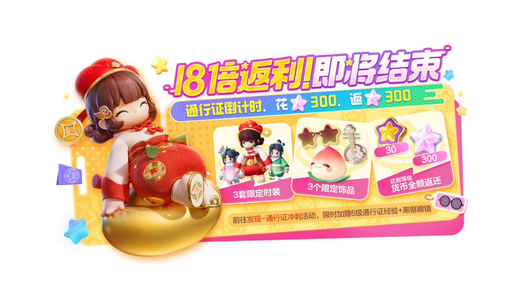 本赛季桃源通行证将于1月25日结束,还没有上车的星宝们要赶快抓紧时间了!千万别错过18倍超值返利和超可爱的限定时装!