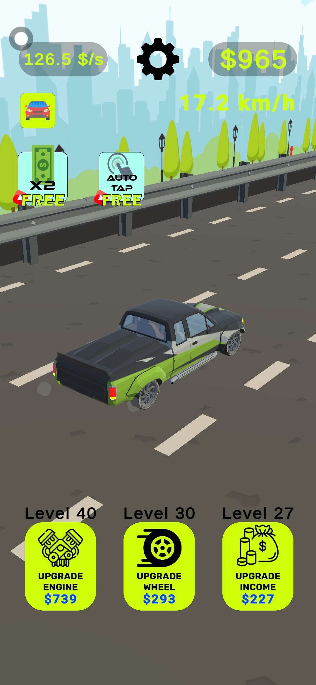 - 从一辆小型城市汽车开始,用您收到的钱升级汽车的零件。 - 你走得越快,升级的钱就越多。 - 更换轮胎,获得更强大的发动机,并要求更多的钱来驾驶。 - 更换汽车,从小型城市汽车开始,然后是货车,再到超级跑车。 - 穿越城市,在海滩上,穿越山脉,改变道路和汽车。 这是一款赛车模拟器游戏,您可以像真正的答题器一级方程式赛车手一样驾驶汽车。 你喜欢开车,开着一辆非常普通的小汽车,穿过一个小镇。 按住屏幕以提高速度,向汽车添加不同的物体并对其进行改进。 获得诸如 10 倍支出、双倍收入和大量金钱等奖励。 驾驶非凡的汽车,成为最佳车手